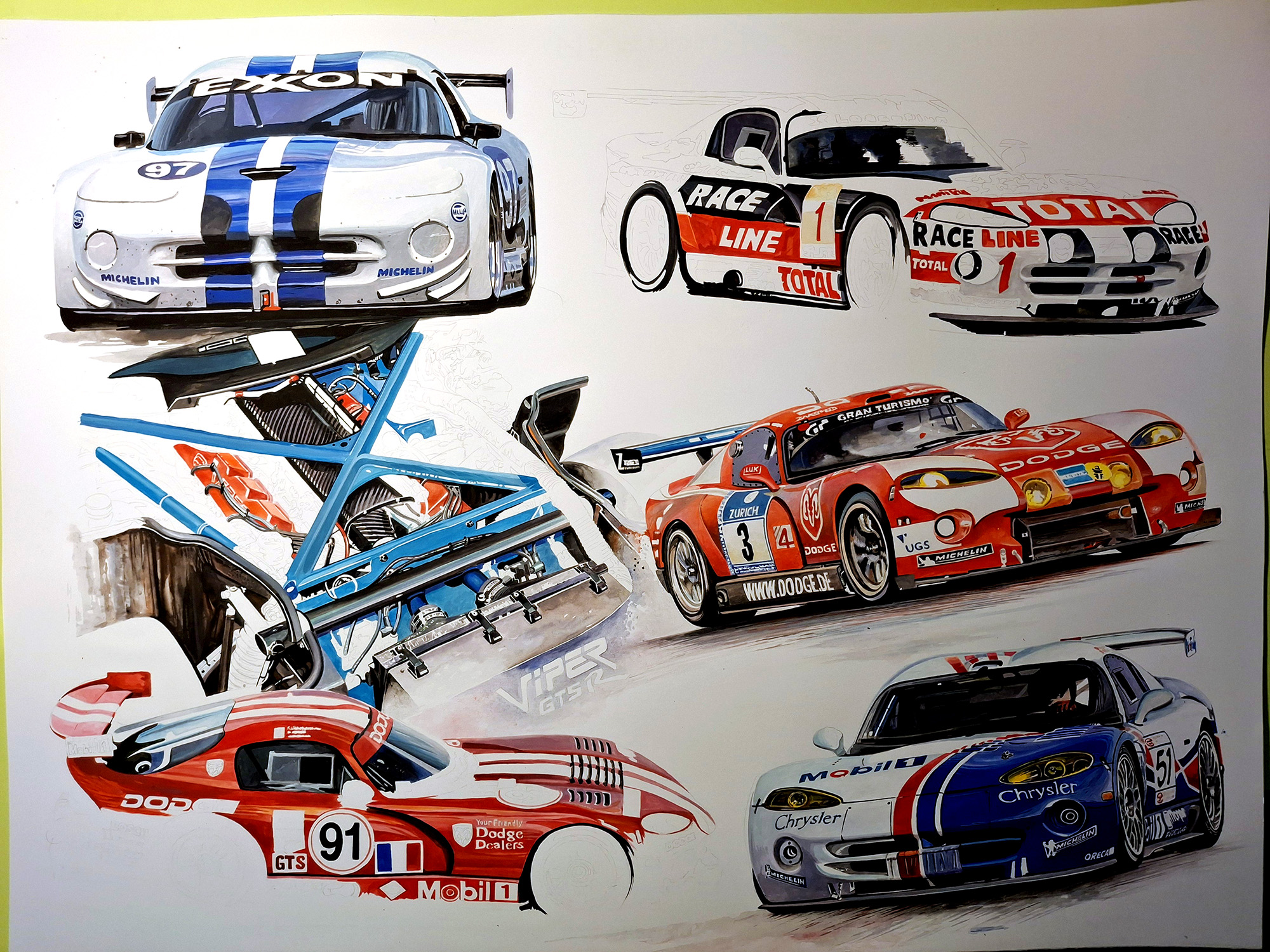 The image shows the evolution of the GTS-R through the eyes of an expert. The prints are high-quality reproductions, limited edition of only 100 pieces. Each is numbered and certified. Museum quality. Printed on 300g paper.